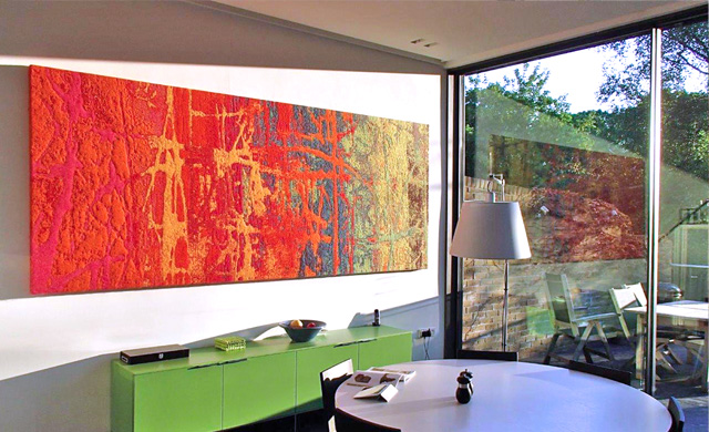 'Op zoek naar een wandkleed/wandbedekking voor een grote witte muur in ons huis, kwamen we je website tegen. We vinden dat je erg mooie dingen maakt, en willen graag een keer langskomen om je werk in het echt te zien. We wonen in Engeland, maar zijn regelmatig in Nederland. We zouden graag vrijdag rond een uur of 12.00 langs komen (op weg vanuit België naar het noorden) Kan dat?'