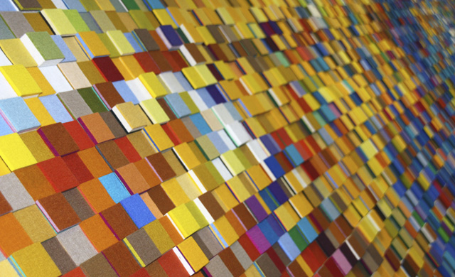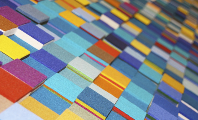 Textiele kunstwerken met geluiddempende werking van textielkunstenares Anne van den Heuvel. De kleurrijke wandkleden worden gemaakt in vilt, op maat en op kleur. De verschillende kleurlagen vormen het reliëf. De monumentale en decoratieve wandtapijten in viltreliëf gaan een geraffineerde relatie aan met het interieur en hebben een gunstige invloed op de akoestiek.
