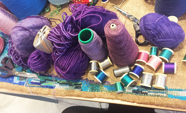 De garens kwamen in beginsel uit Anne's voorraden en werden heel natuurlijk aangevuld door donaties van bezoekers, vrienden, kennissen, collega's, fans, de vrijwilligers zelf ... en zo ontstond een steeds breder scala aan kleuren en materialen die Anne streng selecteerde op 'dat wel en dat niet'. Door dit onorthodoxe gebruik van diverse materialen door elkaar en naast elkaar ontstaan een modern eclectische beeldtaal die precies past bij Anne's manier van werken: serendipity 'de kunst van het toeval'.