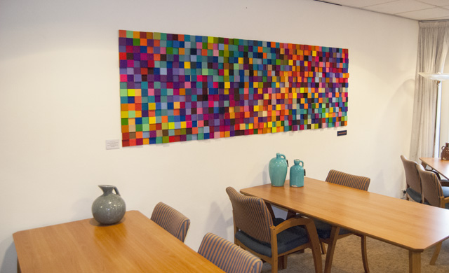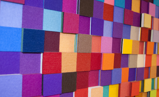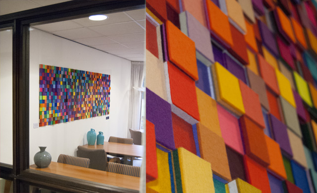 Textiele kunstwerken met geluiddempende werking van textielkunstenares Anne van den Heuvel. De kleurrijke wandkleden worden gemaakt in vilt, op maat en op kleur. De verschillende kleurlagen vormen het reliëf. De monumentale en decoratieve wandtapijten in viltreliëf gaan een geraffineerde relatie aan met het interieur en hebben een gunstige invloed op de akoestiek.