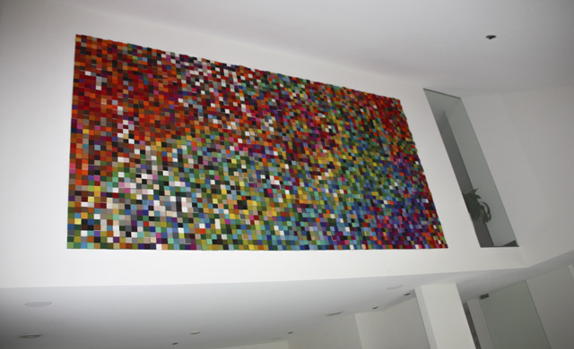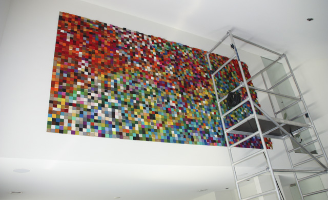 Divine Acoustics kunstwerk op de wand van de ruime eetkamer. Het vormt een mooi geheel ... en er zijn plannen om nog een kunstproject te starten in de hal ...