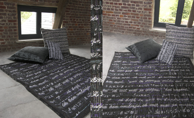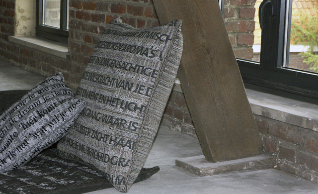 Het kunstzinnige textiele werk van Anne van den Heuvel heeft oneindig veel mogelijkheden. Een plaid als kunstwerk. Kussens als kunstwerk.