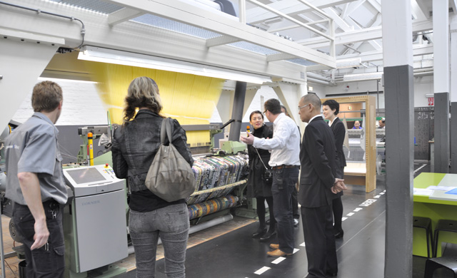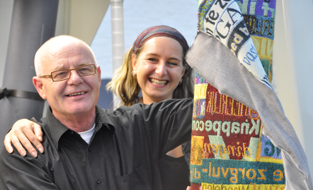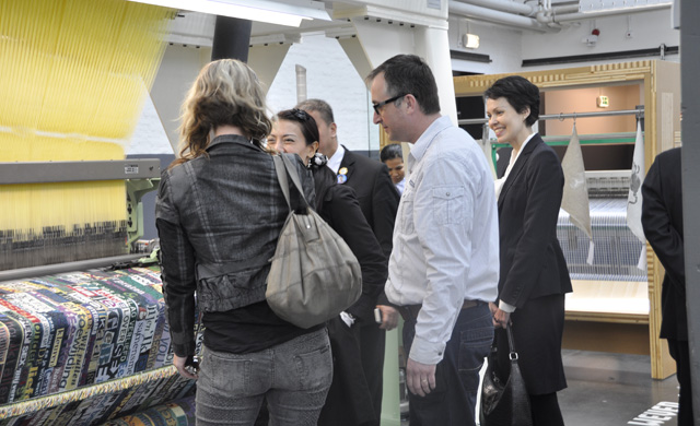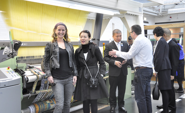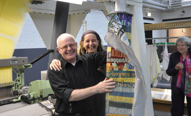 Terwijl Anne van den Heuvel een kunstwerk aan het weven was op het jacquard weefgetouw, kwam de prinses van Thailand op bezoek in het Nederlands Textiel Museum in Tilburg. Samen met de personen die haar vergezelden, bekeek zij het museum en Anne is altijd erg sociaal met en geïnteresseerd in de bezoekers van het museum. Tekst en uitleg over zowel het kunstwerk,als over de maakwijze word gedaan zodra de machine even stil gaat om precies te laten zien wat de bedoeling is van het ontwerp, en hoe de machine werkt en weet wat er te weven is.