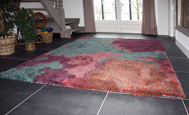 De ontwerpen uit de 'HELLO EARTH' collectie van Anne passen haarfijn bij de vorm van het Acoustic Couture kunstwerk. De kleuren worden samengesteld in het atelier. Ankie komt samen met haar dochter om de kleuren met Anne te selecteren. Op het eerste oog wordt het tapijt niet super knallend, maar bij een blik van dichterbij is te zien dat er wel degelijk gekozen is voor stevige contrastrijke kleuren die direct uit het kunstwerk lijken te zijn gekomen. Dat geeft een mooi en spannend geheel.