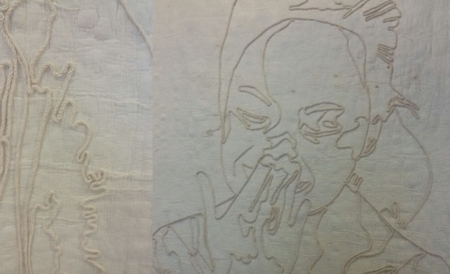 Een monnikenwerk? Ja. Op dit moment wordt in het atelier gewerkt aan 5 GESPREKSSTOF-projecten die je allemaal kunt betitelen als monnikenwerk. Op donderdagen wordt er met een groep vrijwilligers gewerkt aan deze projecten, en op andere dagen kan het zomaar zijn dat u 1 of meerdere van de stagiaires aan het werken is aan de kunstwerken, steekje voor steekje, knoopje voor knoopje, reepje voor reepje, met aandacht, focus en liefde. De liefde waarmee de werken tot stand komen is duidelijk voelbaar.