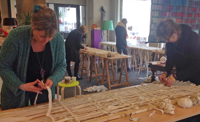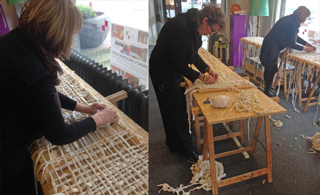 In het atelier in Rosmalen werd geweven, vervilt en veel gelachen. GESPREKSSTOF werd geboren tijdens dit eerste project. Het eerste GESPREKSSTOF project van de 26 die nog zullen volgen.