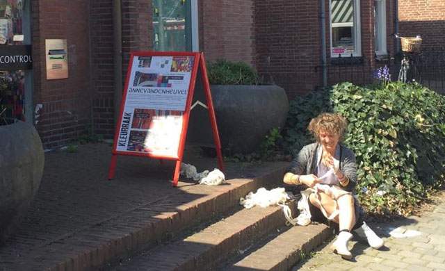 Iedereen die kennis wil maken met het project is van harte welkom. Om te kijken, te luisteren of mee te doen. GESPREKSSTOF wordt grotendeels gerealiseerd door enthousiaste mensen die het project een warm hart toedragen. Op donderdagen werken we met vrijwilligers aan GESPREKSSTOF in Galerie KLEURRAAK aan het Burgemeester Loeffplein 65-66 in 's-Hertogenbosch. Het gaat er allemaal heel ongedwongen aan toe. Gespreksstof genoeg. En natuurlijk is er altijd thee en koffie, en lunchen we samen. Mensen die eerst vreemden voor elkaar waren, worden bekenden. In die zin heeft GESPREKSSTOF ook een sociaal karakter.