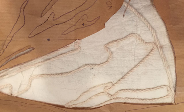 Dit geheel werd aan elkaar vervilt door het op een traditionele Ottomaanse wijze, met een soort 'dansje' met de voeten te rollen, deze methode is belangrijk en heeft Anne ooit geleerd van viltmeester Mehmet Girgic. Het vervilten van wol gebeurd door wrijving, met behulp van vocht en olijfzeep. Uiteindelijk ontstaat een constructief geheel.