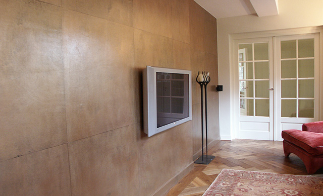 Binnen een kleurontwerp realiseert zij desgewenst ook metallicwanden met karakter. Stoer, chique, robuust, verfijnd of klassiek. Anne van den Heuvel kan toveren met metallics.
