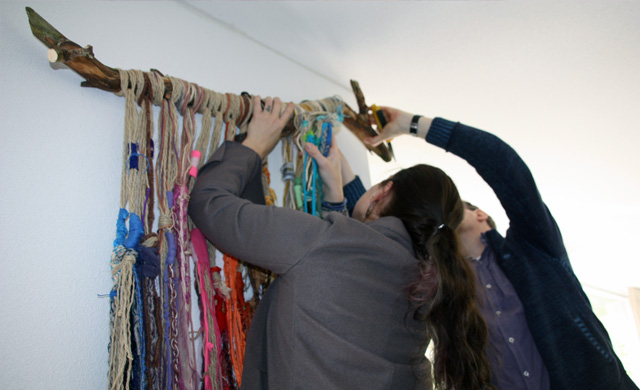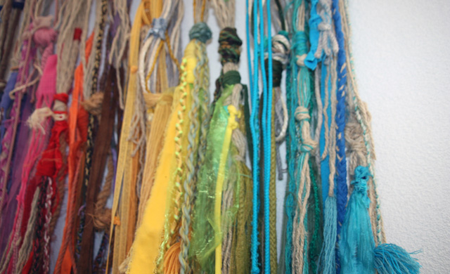 "Een kunstwerk geïnspireerd op een Khipu, een mysterieus knoopwerk dat mogelijk werd gebruikt door de Inca’s om informatie door te geven. Anne ontwierp op ons verzoek deze moderne variant! Het werk sluit niet alleen perfect aan bij onze wensen maar zeker ook bij het oude idee van informatieverstrekking. Je staat ervoor en ziet de ontelbare manieren waarop Anne met het materiaal is omgegaan: knopen, vlechtjes, koordjes, gedraaide touwtjes, lange en korte repen stof. Iedere keer opnieuw zie je andere bewerkingen. Je realiseert je des temeer dat het knoopwerk van de oude Inca’s inderdaad een communicatiemiddel geweest zou kunnen zijn. Kortom, met haar creatieve geest heeft Anne haar eigen kleurrijke verhaal gecreëerd. Naar onze beleving is deze moderne khipu een literair meesterwerk dat wij met genoegen blijven herlezen!"