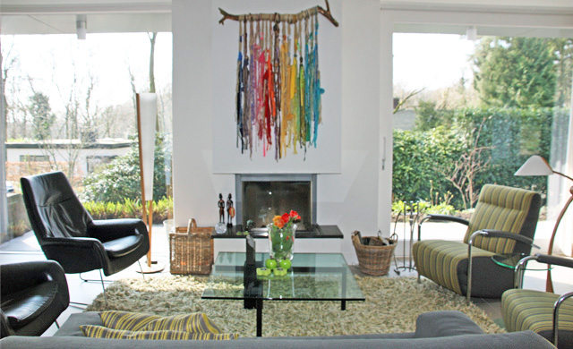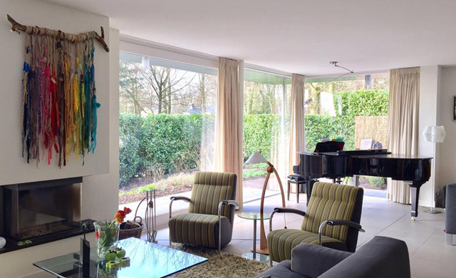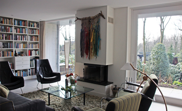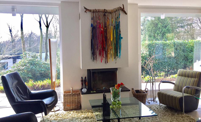 Anne creëerde in de prachtige woning van Joke en Jos een derde kunstwerk. Eerder werden een Acoustic Couture werk en een Divine Acoustics werk voor deze mooie locatie ontworpen.