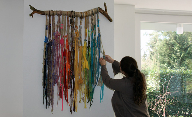 In de zomer kreeg Anne bericht van Jos en Joke dat ze juist terug waren uit Peru en interesse hadden in een nieuw kunstwerk voor de schouw. Anne was juist op een wereldmuziek festival. De inspiratiebron voor een nieuw werk werd de Khipu. Een waanzinnig werk om te realiseren, er ging soms wel meer dan 4 a 5 volle dagen werk in het creëren van 1 streng. Uiteindelijk werden 15 kleurrake strengen gerealiseerd.