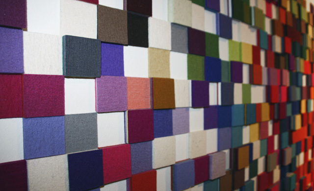 Textiele kunstwerken met geluiddempende werking van textielkunstenares Anne van den Heuvel. De kleurrijke wandkleden worden gemaakt in vilt, op maat en op kleur. De verschillende kleurlagen vormen het reliëf. De monumentale en decoratieve wandtapijten in viltreliëf gaan een geraffineerde relatie aan met het interieur en hebben een gunstige invloed op de akoestiek.