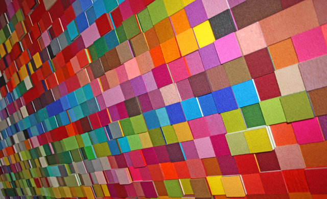 Textiele kunstwerken met geluiddempende werking van textielkunstenares Anne van den Heuvel. De kleurrijke wandkleden worden gemaakt in vilt, op maat en op kleur. De verschillende kleurlagen vormen het reliëf. De monumentale en decoratieve wandtapijten in viltreliëf gaan een geraffineerde relatie aan met het interieur en hebben een gunstige invloed op de akoestiek.