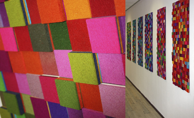 Textiele kunstwerken met geluiddempende werking van textielkunstenares Anne van den Heuvel. De kleurrijke wandkleden worden gemaakt in vilt, op maat en op kleur. De verschillende kleurlagen vormen het reliëf. De monumentale en decoratieve wandtapijten in viltreliëf gaan een geraffineerde relatie aan met het interieur en hebben een gunstige invloed op de akoestiek.