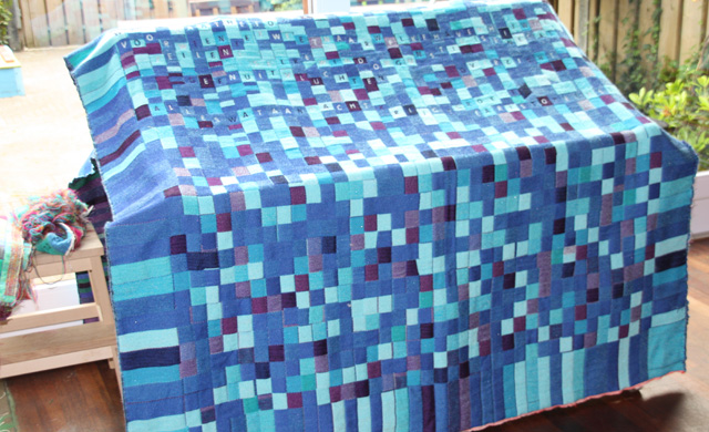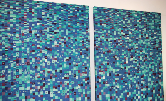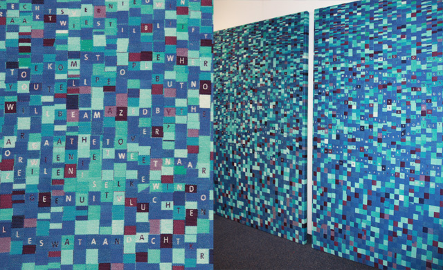 Voor het kantoor van Thalatta ontwierp Anne van den Heuvel 2 prachtige blauwe kunstwerken. Strak in het stramien, en toch weer niet. In blauwtinten, de grenzen opzoekend naar paars en groen ... testen, waar eindigt blauw voor Niek, en waar begint paars?